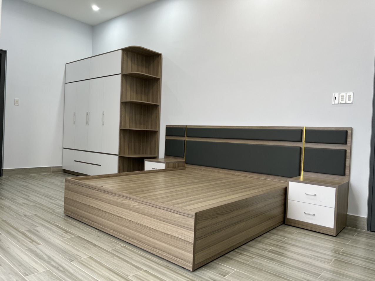 Gia chủ mong muốn sở hữu một phòng ngủ mang phong cách hiện đại – tối giản – tinh tế, ưu tiên cảm giác thoáng đãng, ấm áp và không bị rối mắt. Phòng ngủ trước khi thi công khá đơn giản, chưa có sự đồng bộ về nội thất và ánh sáng chưa được tối ưu.